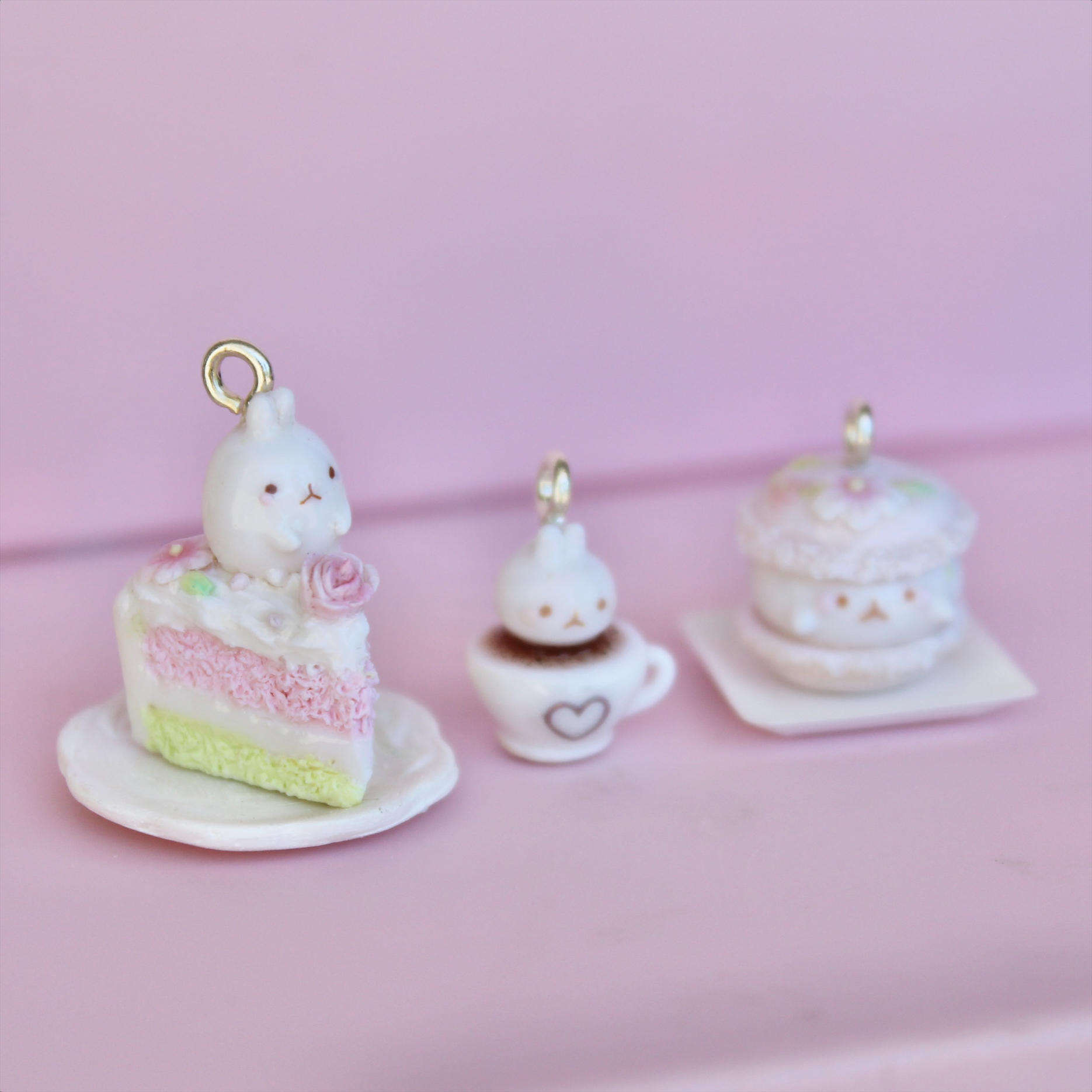 Tea party themed Molang charms! 🐰🍰☕